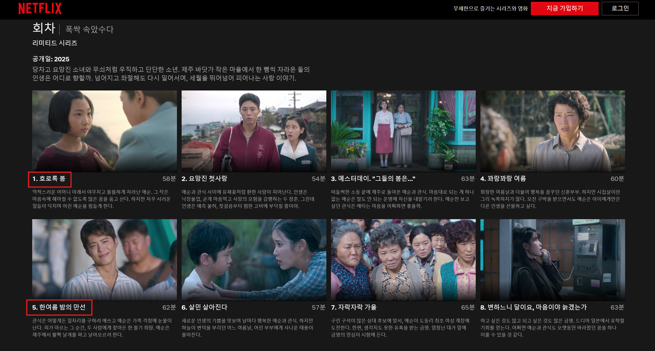 아이유와 박보검이 출연한 <폭삭 속았수다>는 총 4막으로 나누어져 진행되며, 각 막은 4회씩 방영됩니다. 제주도에서 태어난 애순이와 그녀를 쫓아다니는 관식이의 이야기를 봄, 여름, 가을, 겨울 사계절로 나누어 풀어냅니다.